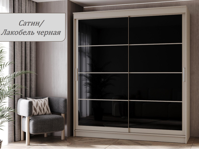 - Шкаф-купе Гранд-1 2000 Сатин-двери Лакобель черный