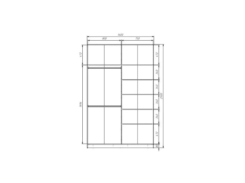 - Шкаф-купе Max МШ-25-6-16-99 пленка Oracal светло-серая