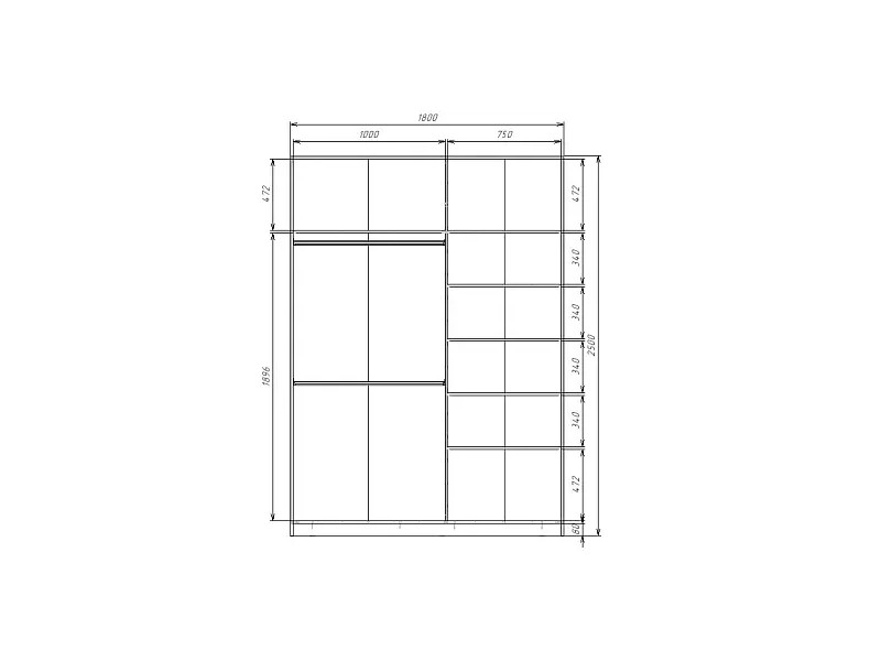 - Шкаф-купе Max МШ-25-6-18-22 пленка Oracal темно-серая