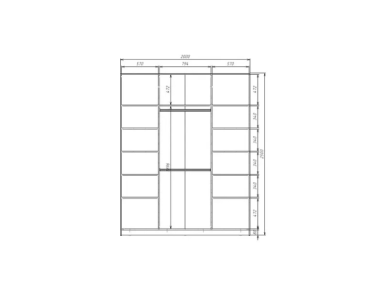 - Высота: 2500 мм