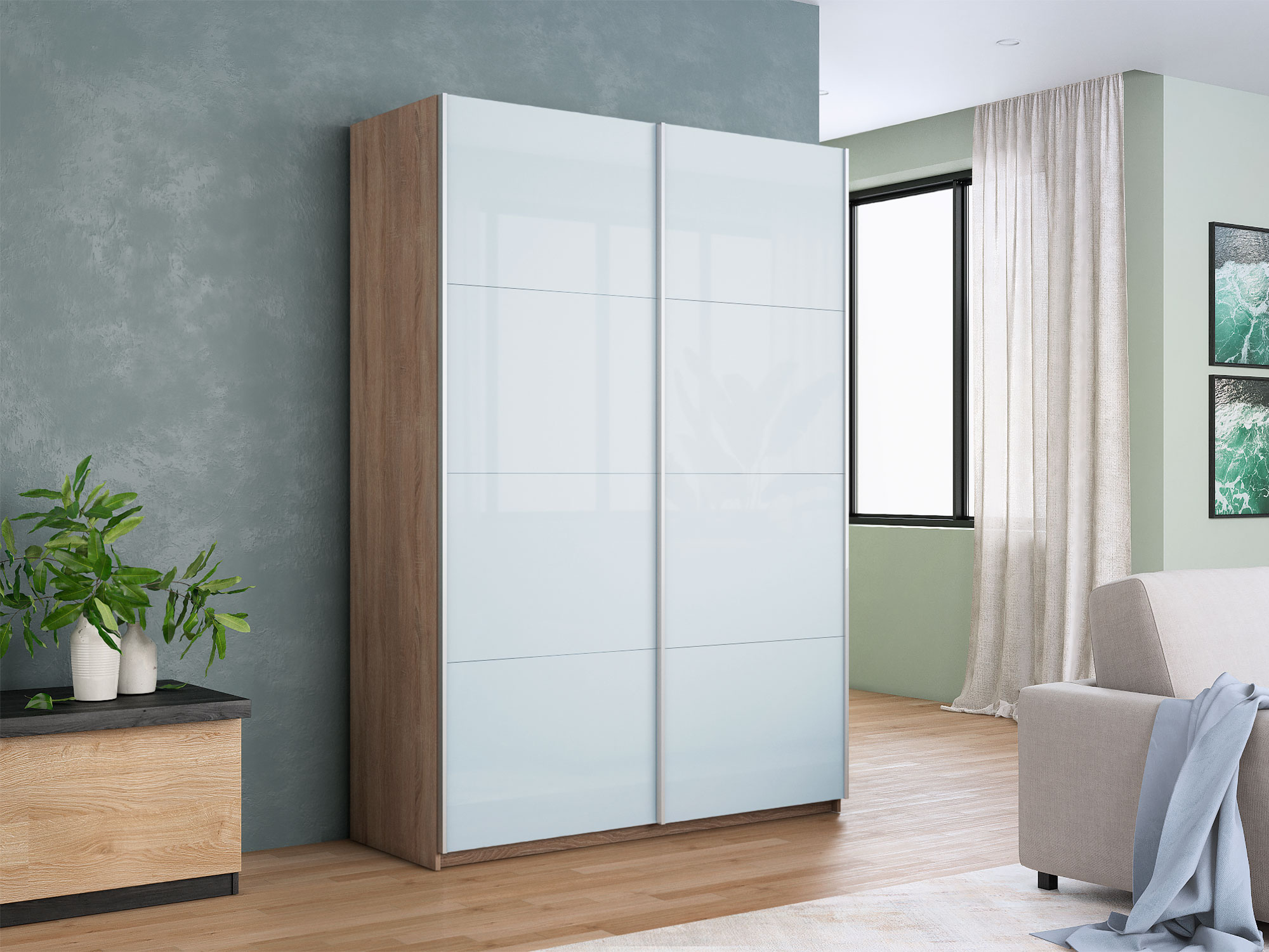 - Шкаф-купе Прайм 2-х дверный 1200 Стекло Белое Сонома