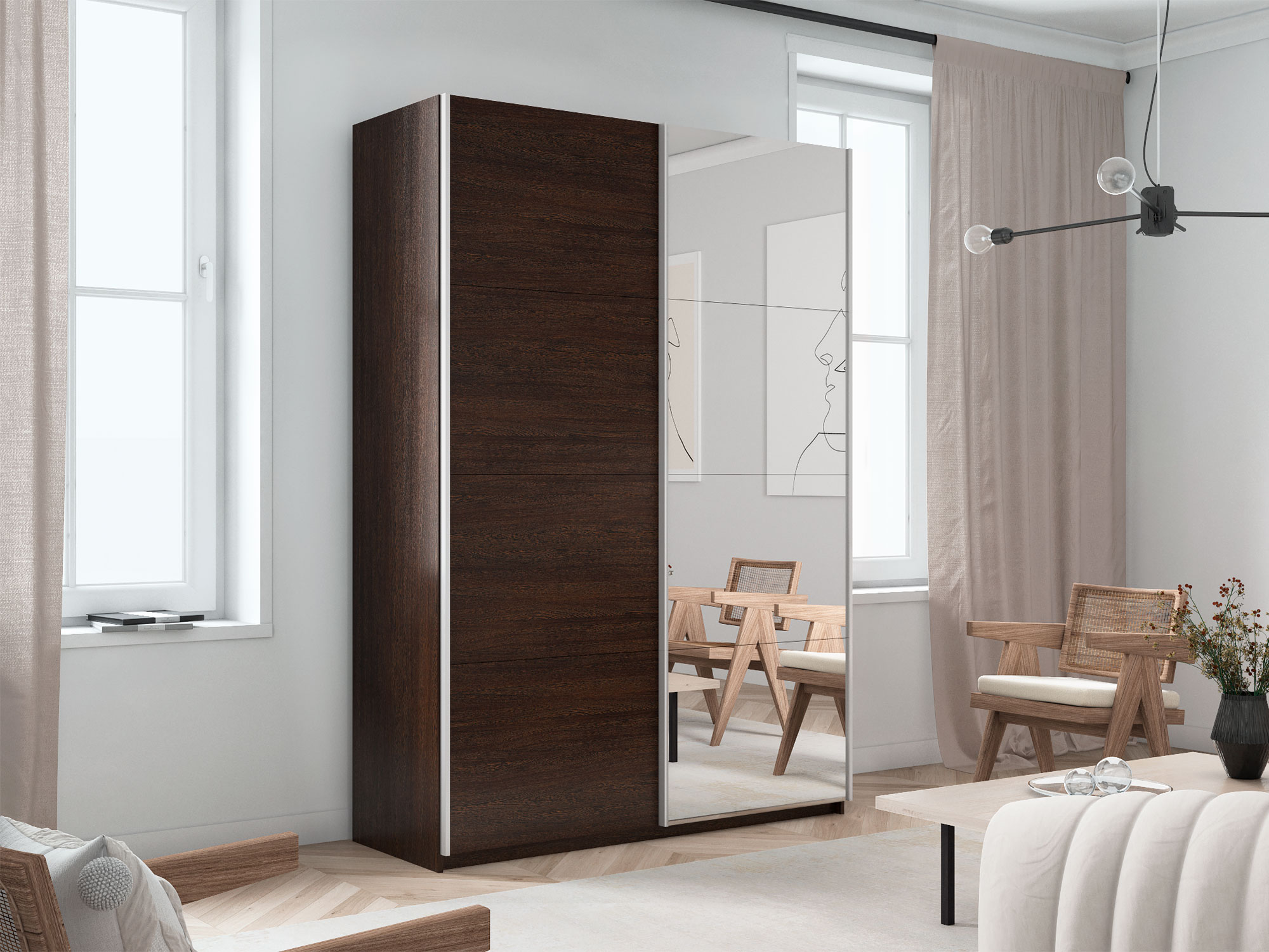 - Шкаф-купе Прайм 2-х дверный 1200 Зеркало/ДСП Венге