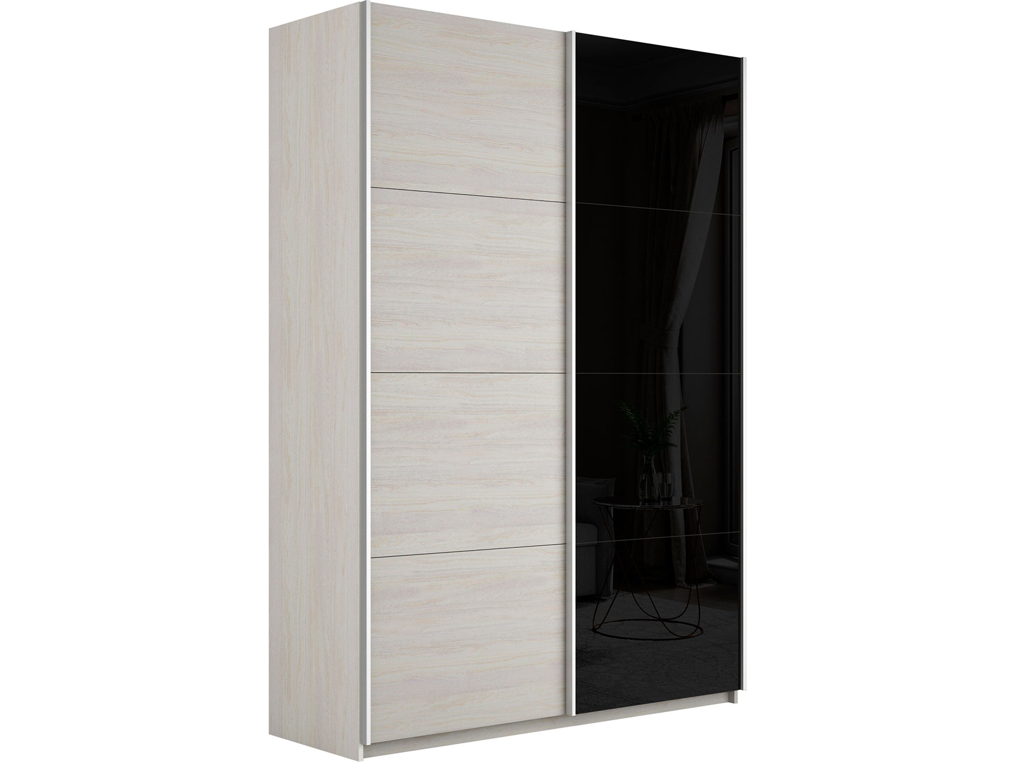 - Шкаф-купе Прайм 2-х дверный 1400 ДСП/Стекло Черное Ясень Анкор Светлый