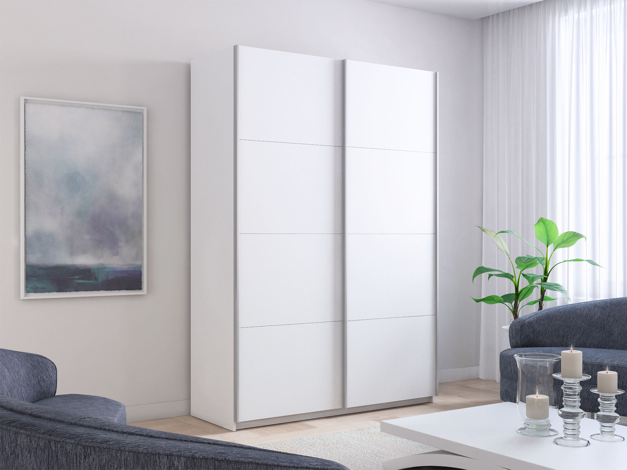 - Шкаф-купе Прайм 2-х дверный 1400 два ДСП Белый Снег