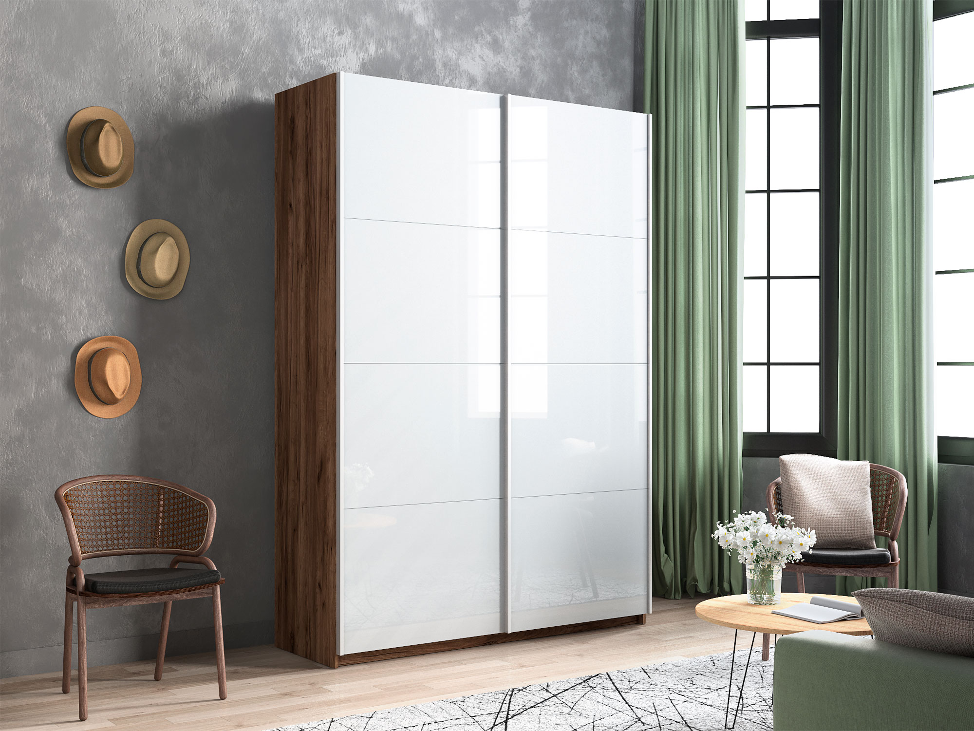 Шкаф-купе Прайм 2-х дверный 1400 Стекло Белое Крафт табачный