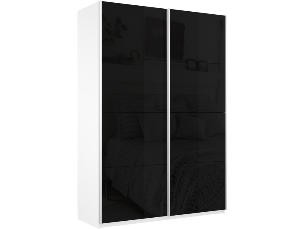 Шкаф-купе Прайм 2-х дверный 1400 Стекло Черное Белый Снег