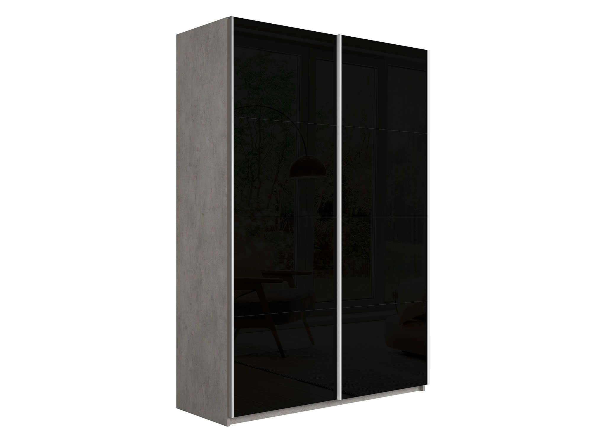 - Шкаф-купе Прайм 2-х дверный 1600 Стекло Черное Бетон