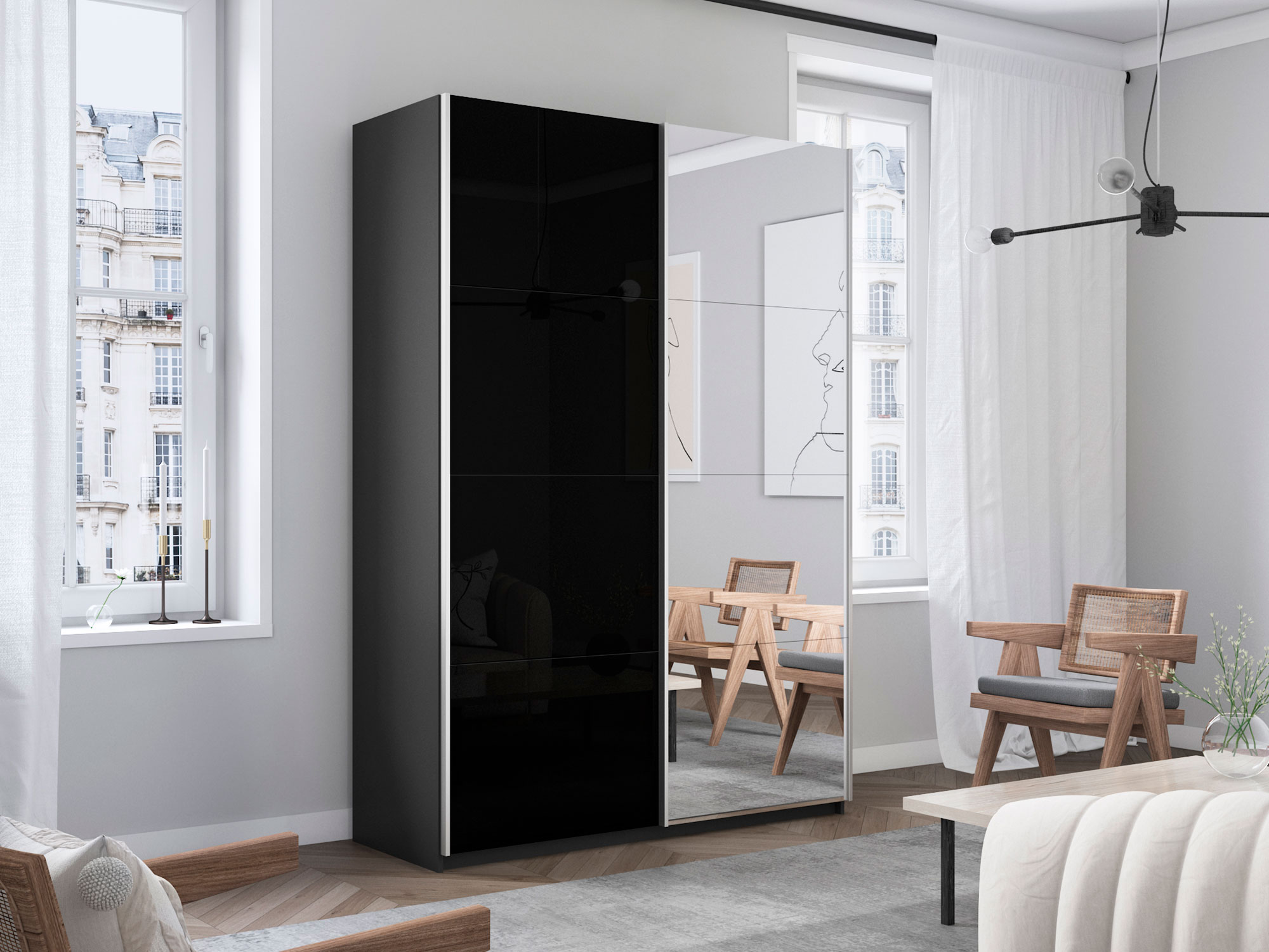 - Шкаф-купе Прайм 2-х дверный 1600 Зеркало/Стекло Черное Серый Диамант