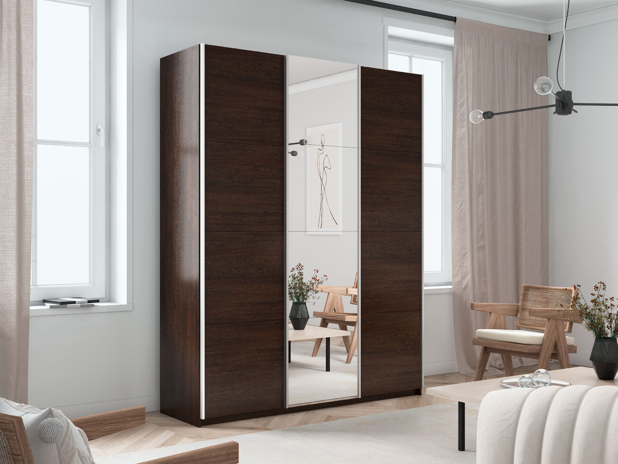 - Шкаф-купе Прайм 3-х дверный 1800 ДСП/зеркало/ДСП Венге