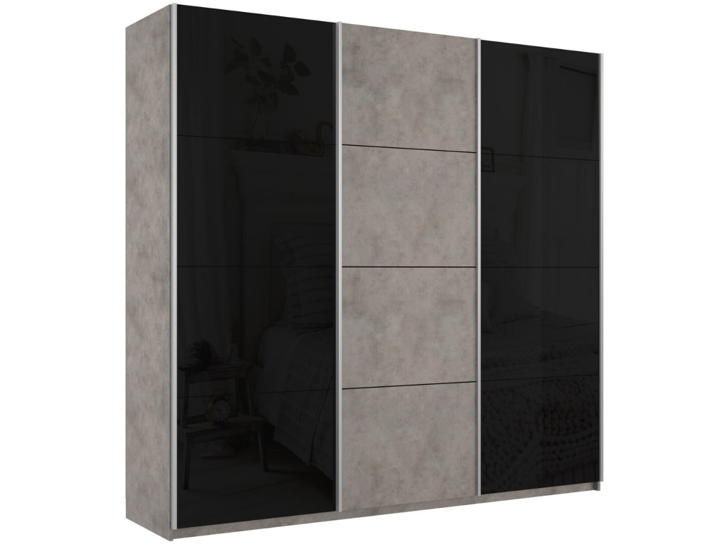 - Шкаф-купе Прайм 3-х дверный 1800 два Стекла Черные/ДСП Бетон