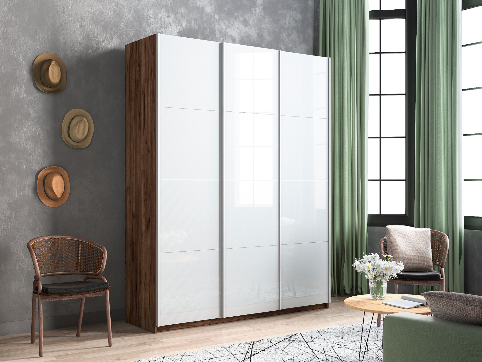 - Шкаф-купе Прайм 3-х дверный 1800 три стекла белые Крафт табачный