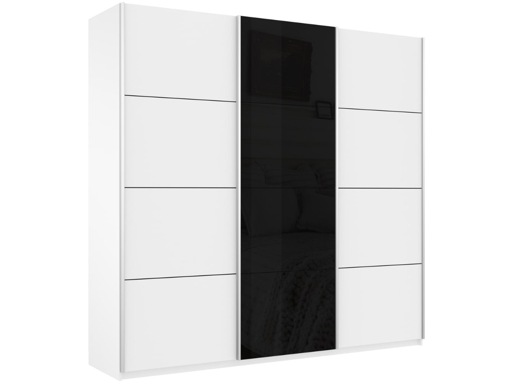 - Шкаф-купе Прайм 3-х дверный 2100 ДСП/Стекло Черное/ДСП Белый Снег