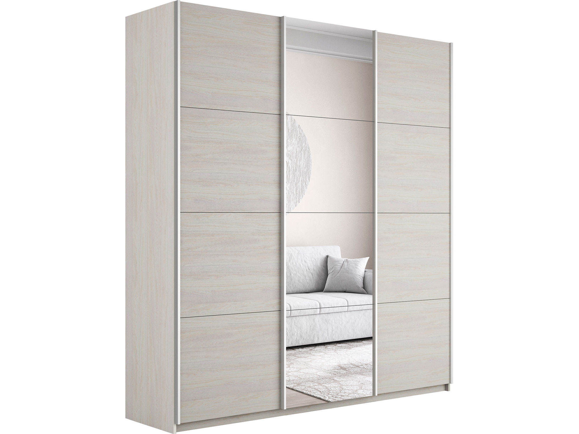 - Шкаф-купе Прайм 3-х дверный 2100 ДСП/зеркало/ДСП Ясень Анкор Светлый