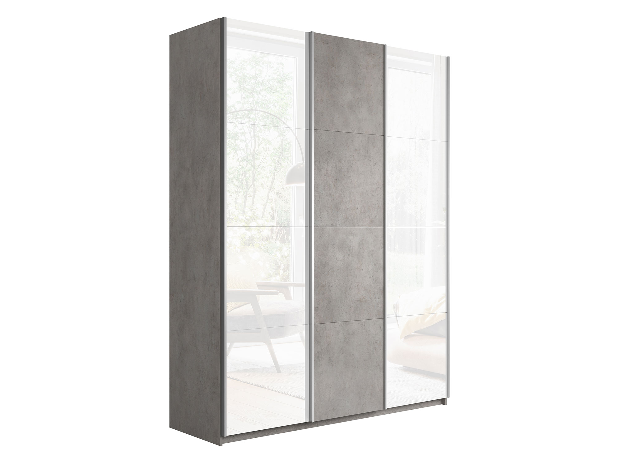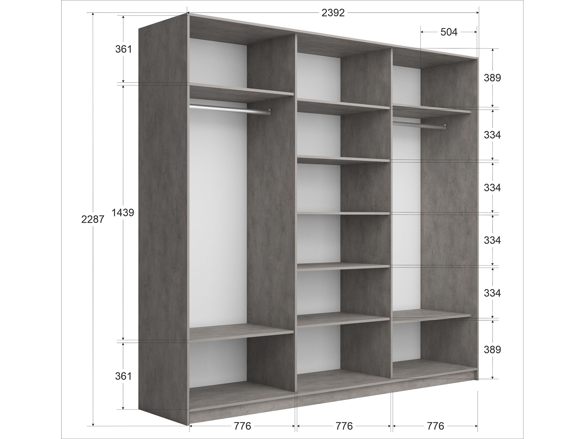 Шкаф-купе Прайм Широкий 3-х дверный два белых стекла/ДСП Бетон