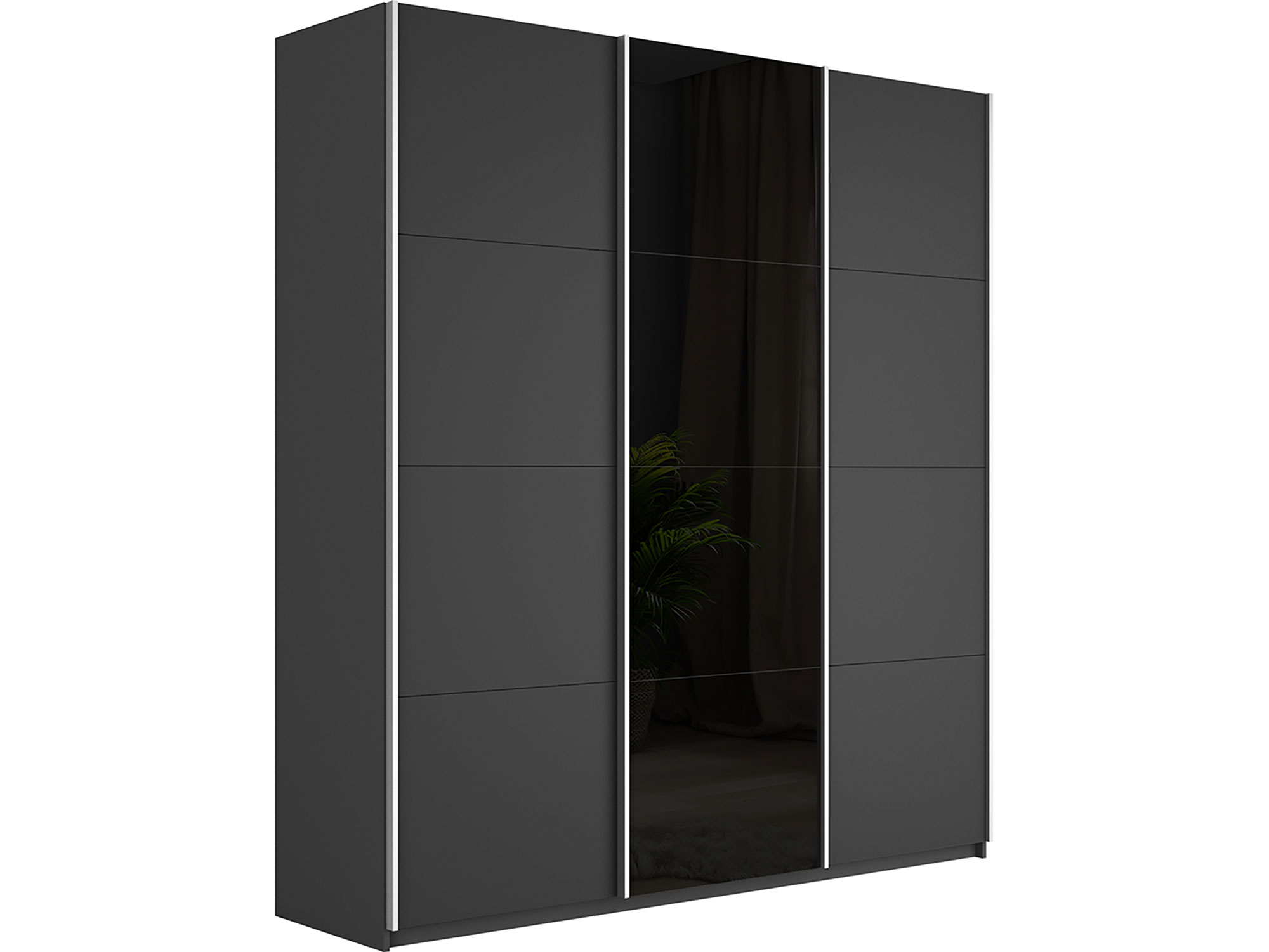 - Шкаф-купе Прайм Широкий 3-х дверный два ДСП/Стекло Черное Серый Диамант