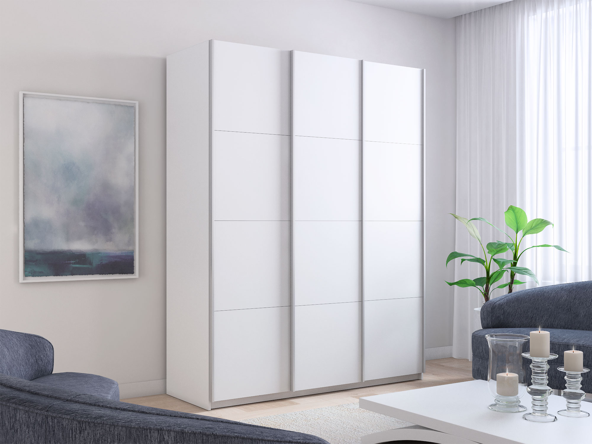 - Шкаф-купе Прайм Широкий 3-х дверный три ДСП Белый Снег