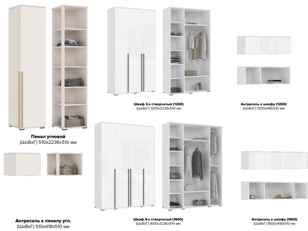 - Шкаф модульный с угловым пеналом Норд Белый глянец
