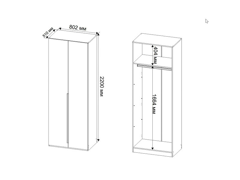 Размеры В*Ш*Г, мм: 2200х800х510
