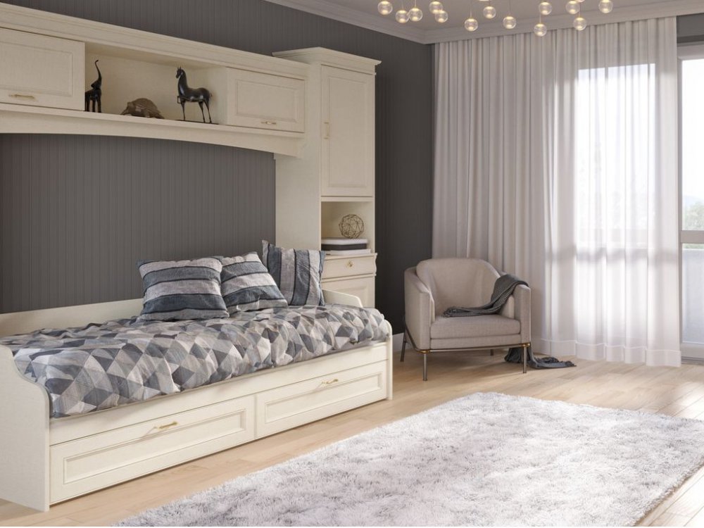 Сочетается с односпальной кроватью с ящиками из этой коллекции.
