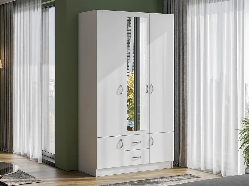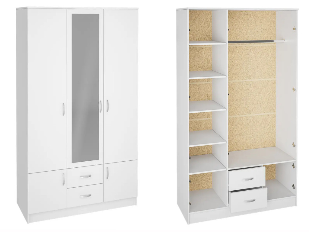 - Шкаф Ронда ШК-3 с зеркалом белое дерево