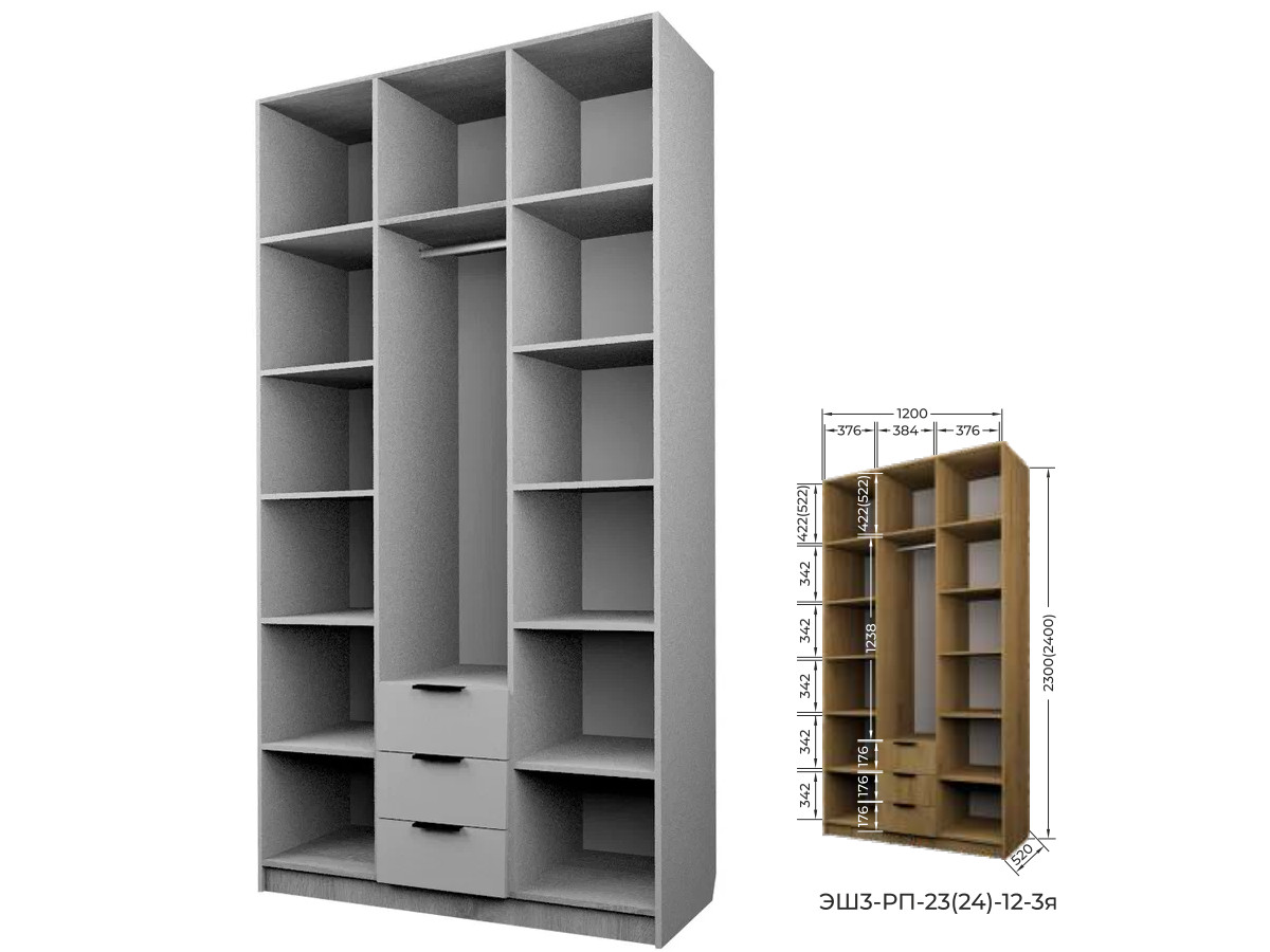 Комплект: ЭШ3-РП-23-12-3я, Шкаф с 3 ящиками + ЗС-23-3я,Зеркало для шкафов ЭШ 2300 мм + два ЗС-23, Зеркало для шкафов ЭШ 2300 мм