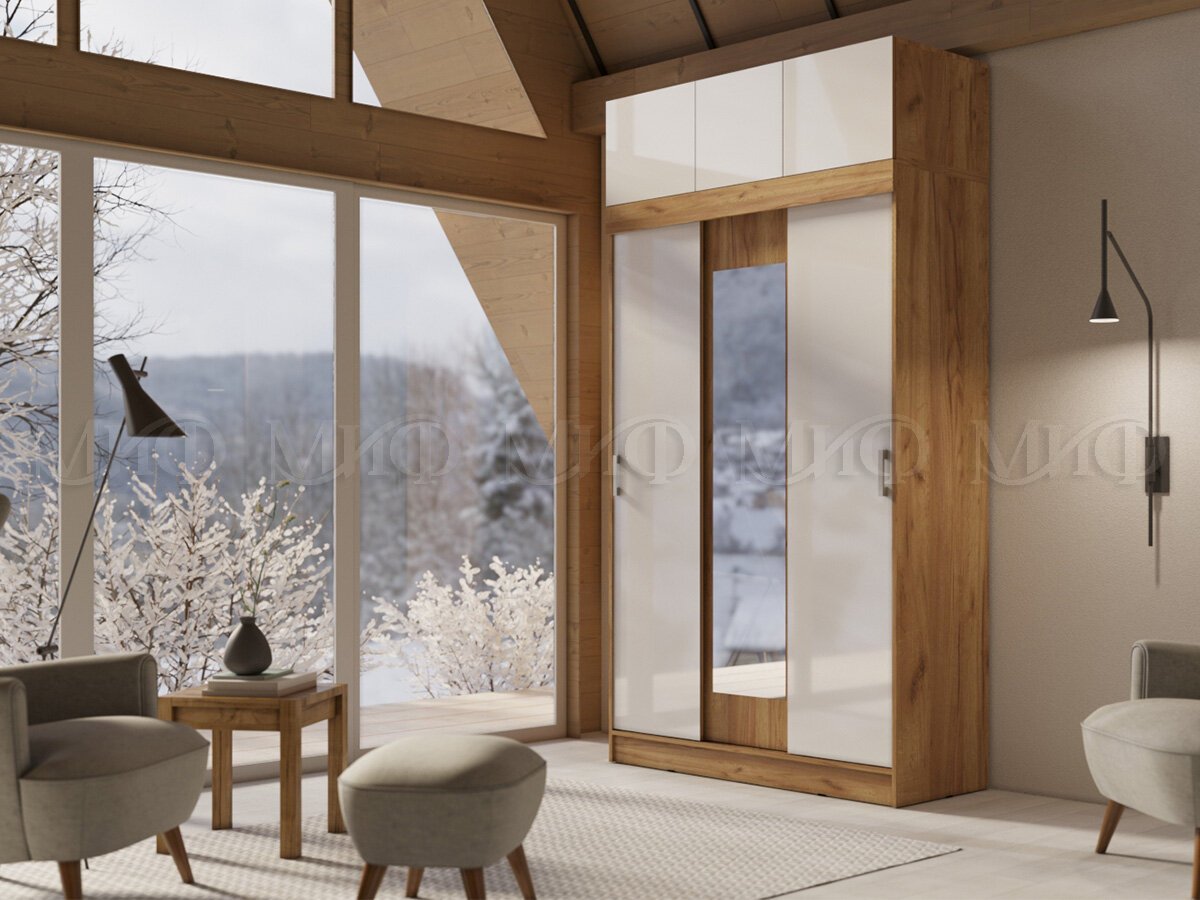 - Шкаф с антресолью Бася/Роджина Белый глянец холодный/Дуб крафт