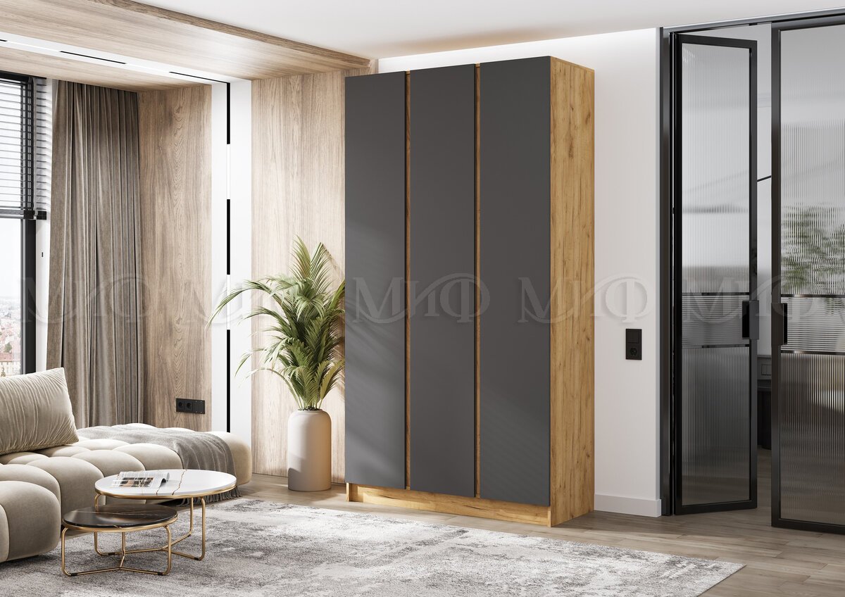 Шкаф трехстворчатый Келвин (1200) Графит, Дуб Крафт-вставка дуб крафт