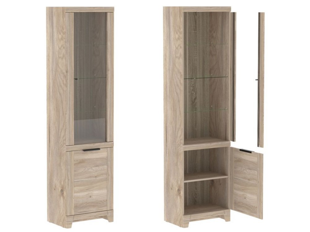 Пенал со стеклом Юта укомплектован полками по всей высоте: 3- стекло (максимальная нагрузка на полку стекло - 5кг), 1 - ЛДСП (максимальная нагрузка на полку - 15кг).