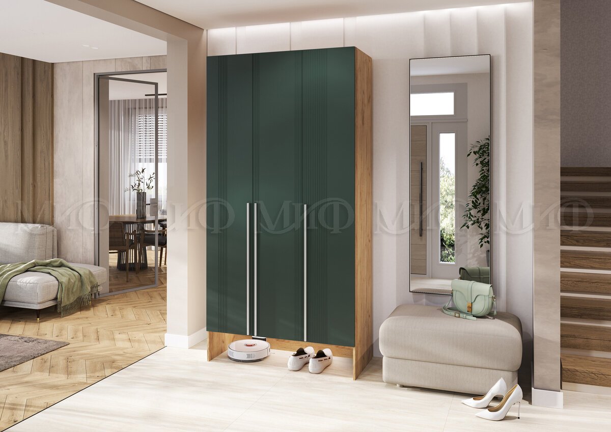 - Прихожая Луна шкаф 3-х створчатый Браш Мени Грин, Дуб Крафт