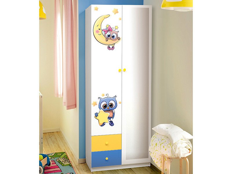 Шкаф двухдверный с зеркалом и фотопечатью Совята 2.1