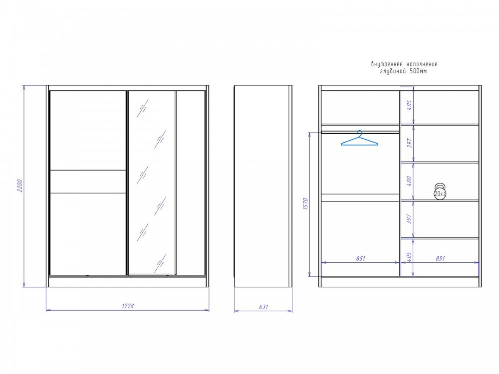 - Шкаф-купе 2-х дверный NEW 2200 Денвер